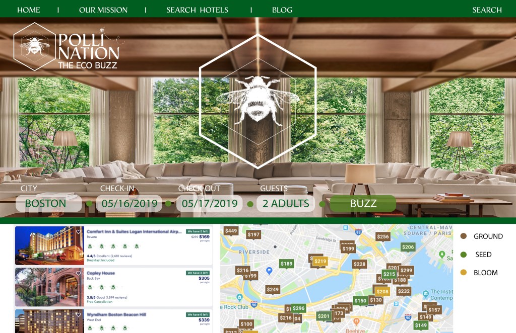 One of my favorite classes at MassArt was Branding, led by Prof. Laura Woolpert. For this class, I developed the Pollination brand as an effort to create a system that’s first contribution of many would be to help people compare and select hotels, taking into consideration their sustainability policies and practices as well as price and overall rating. This user-friendly online tool is designed to cater to anyone seeking to embrace an environmentally conscious lifestyle throughout the year.