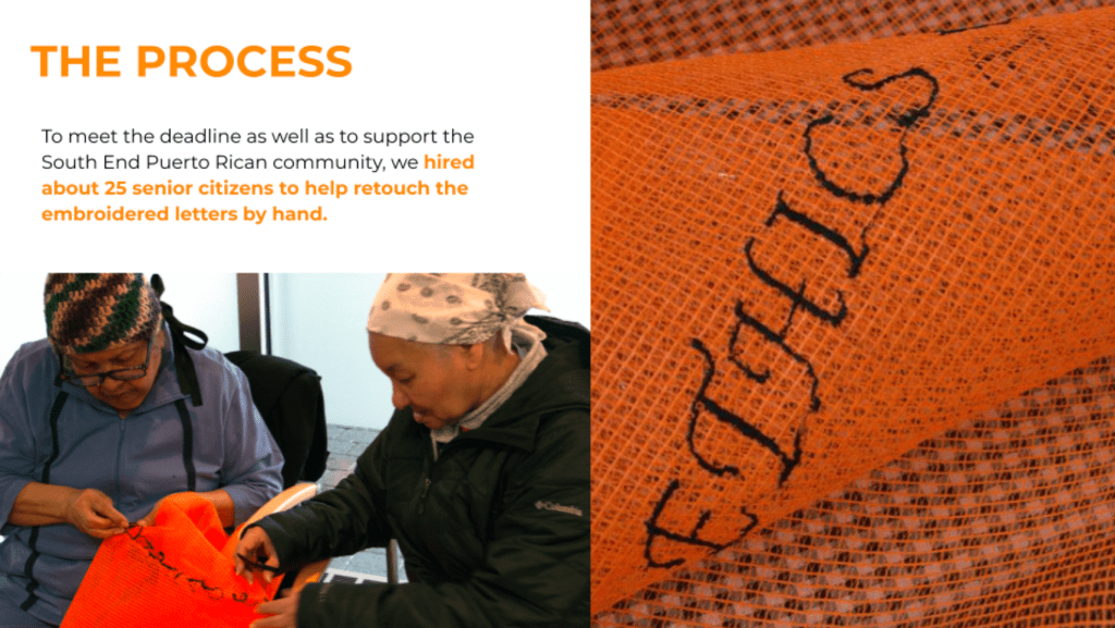 “UNLESS” was a massive public art installation by artist Stephanie Cardon & a small team of collaborators that helped create the piece. The art piece was displayed at Boston’s Prudential Mall from August through December of 2018. As a collaborating artist I determined 7-step action plan and procedures to fabricate the construction mesh 3,400sf art piece in our 25sf studio space through a four month timeline.