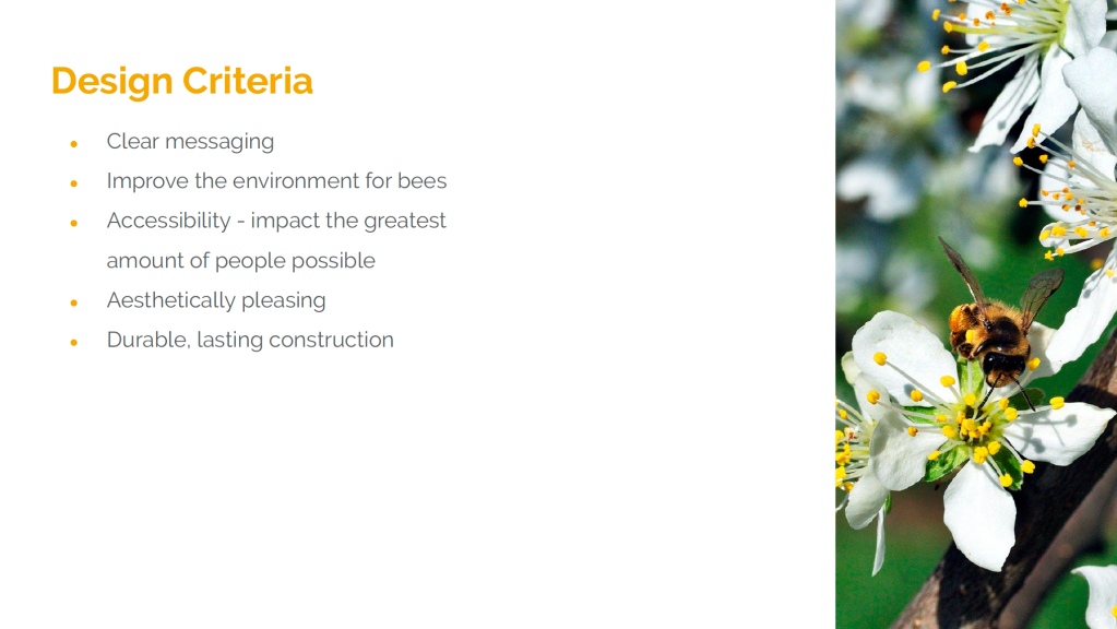 For one of our Industrial Design classes led by Prof. Lars Fischer, my team developed a product that would provide an urban, biodiverse food source for bees and inspire people in Boston to raise awareness of bees’ importance.