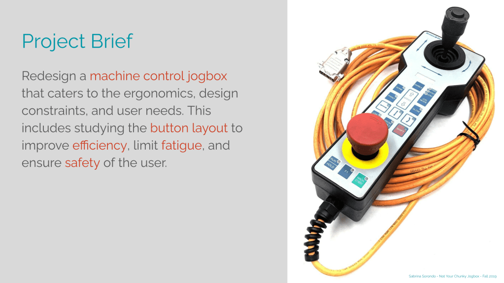 For one of my Industrial Design classes led by Prof. Lars Fischer, I was tasked to redesign a jogbox (an industrial machine controller) to make it more ergonomic for the user. Here you can see my research and design processes.