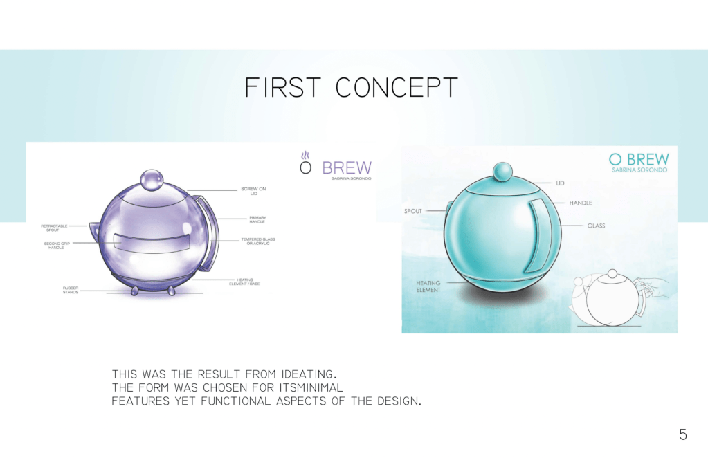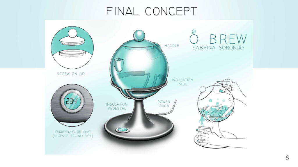 For one of my Industrial Design classes led by Prof. Judith Anderson, I had to design an original electric tea kettle with a defined style that would inform the materials, form, ergonomics, and user experience. I chose a minimalist, high-end, design and created Õ BREW. Note: The pads that transmit heat are induction pads, not insulation.