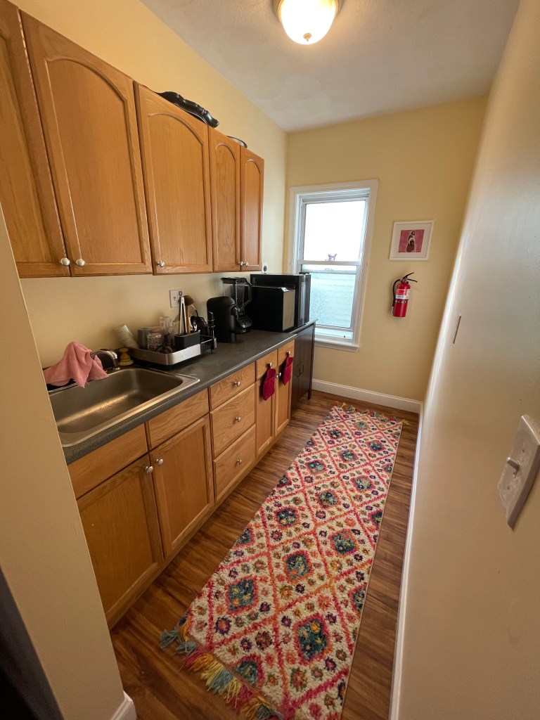 When I first saw the listing for this apartment, I had one look at the kitchen and immediately thought “it’s a NO for me”. Boston has a funny quirk where they take a hundred year old house built for one large family and divide it into multiple units. Because of this, our apartment’s kitchen was probably built to be a living room and the appliances there were someone’s afterthought that had no structure. The listing showed the stove by itself in one corner, the fridge in the way with nothing around it, and the only countertop was next to the sink in a separate room. Zero functionality.