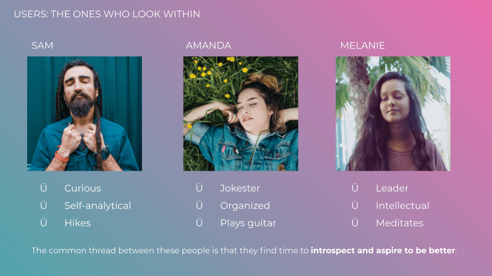I designed an iOS app for mental health, TÜMI (2020), that allows users to video journal and tag archive each post for ease of revisiting. To make this app, I created market research, conducted multiple interviews, developed a paper wireframe and ran user tests to refine the design and flow. While the goal of this app is not to “reach happiness”, as happiness is just like any emotion, ephemeral, the goal is to provide users a place where they can see themselves in retrospect from the third person POV. This would provide self-empathy, grace for oneself, and an overall understanding of our emotions as we go through life. TÜMI would be a tool of self-understanding.