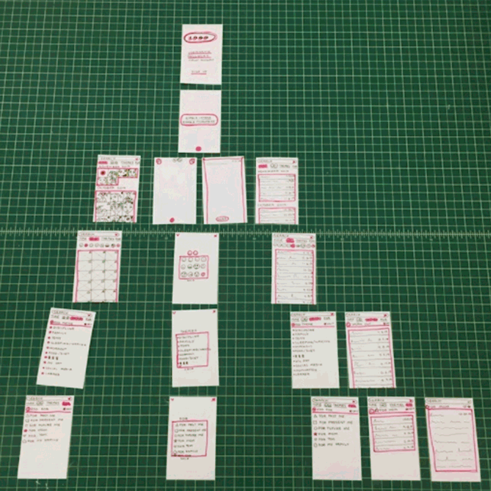 I created a paper wireframe with each screen and button for user testing.